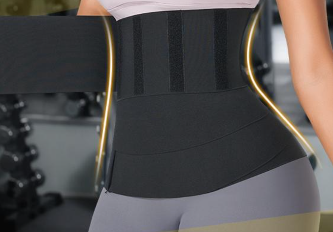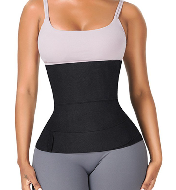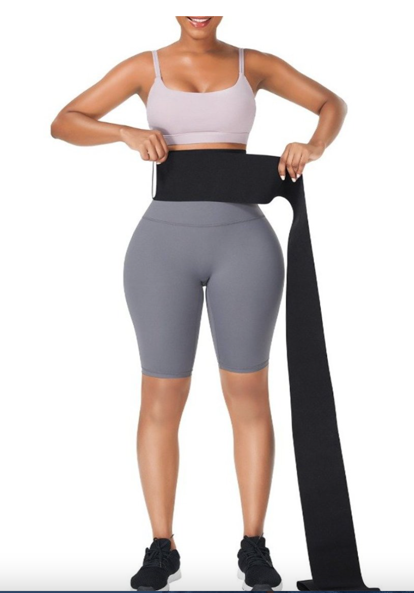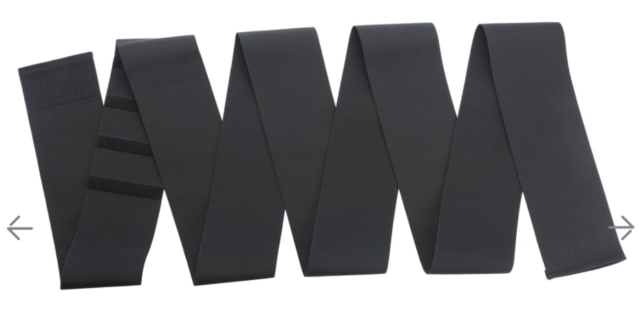 Black, brown or nude latex, tummy wrap with high compression. One size fits most.