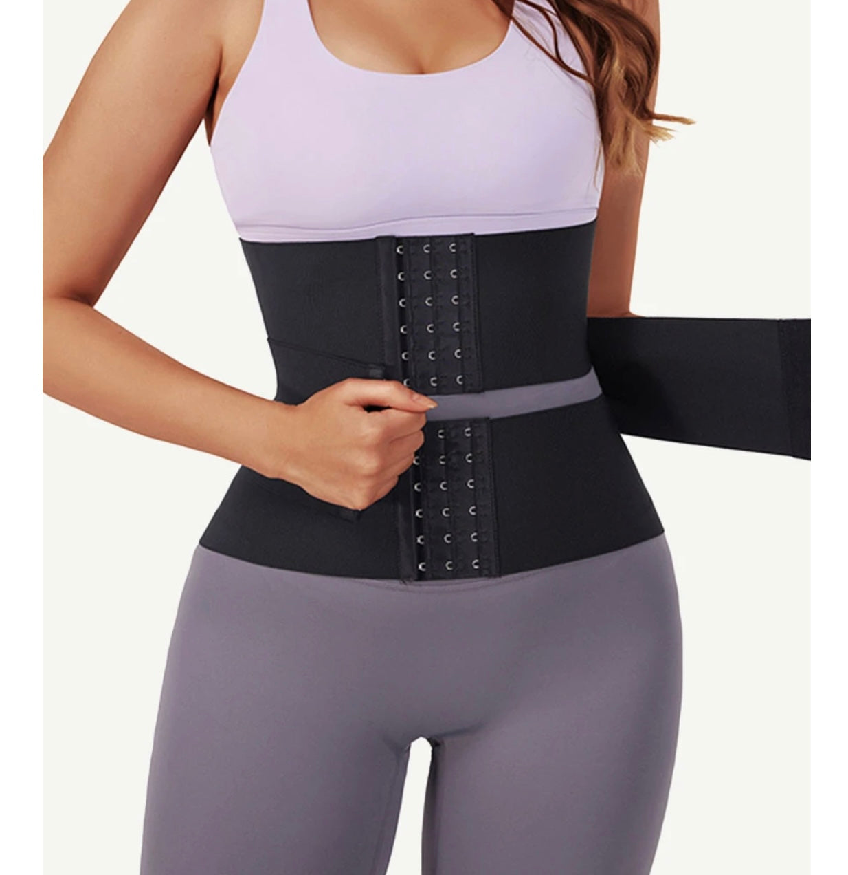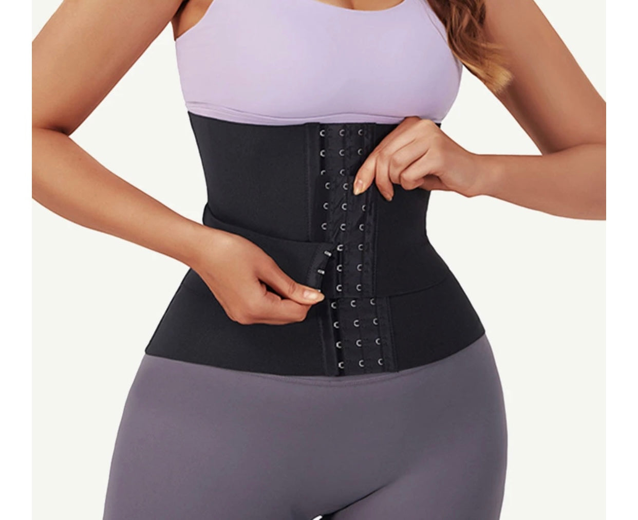 Segmented, three piece tummy wrap with three steel bones that support the waist & prevent crimping. Highly elastic/stretchy so I suggest you size down.